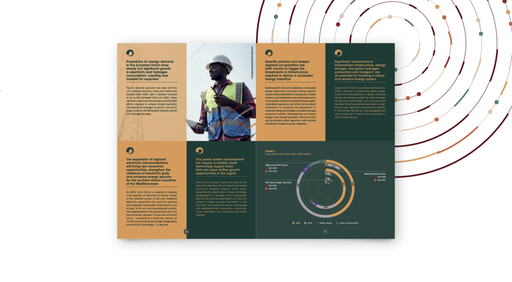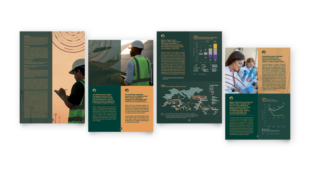 For this project, Phoenix Design Aid had the pleasure of developing a brochure which presents an assessment of the Mediterranean region’s renewable energy potential and future energy pathways. The work included concept and graphic design as well as the creation of infographics, data visualizations, layout and artwork.